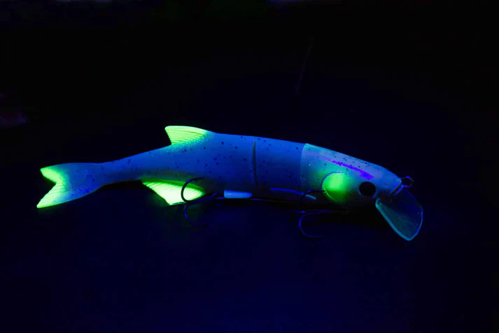 Bernstein trifft Neongelb. Der Köder ist UV Aktiv und eine super Farbe in den Morgen- und Abendstunden sowie im grünlichem und bräunlichem Wasser.